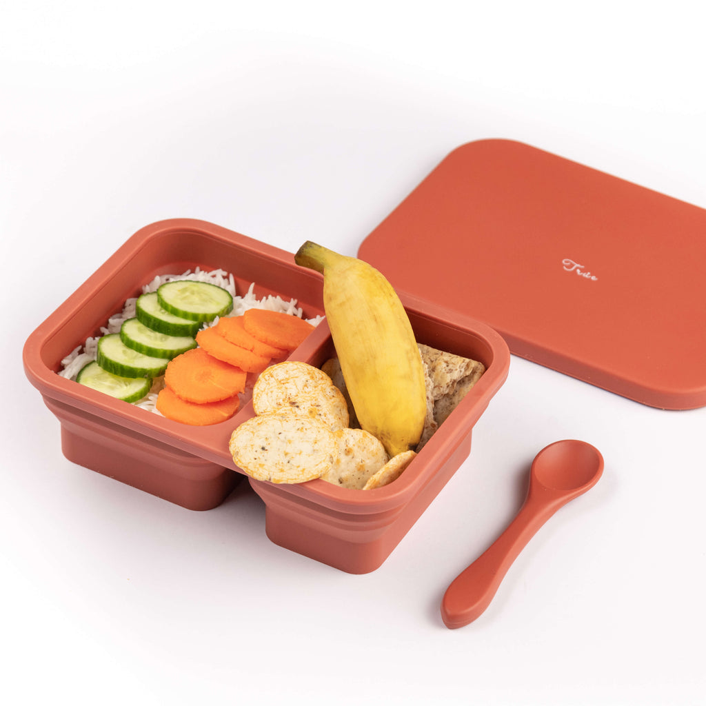 Enjoy your meals with ease! This Silicone Collapsible Divided Lunch Box is perfect for dining at home or while traveling. Designed to accommodate babies, toddlers, and adults alike, it offers a convenient and stylish way to carry your food.