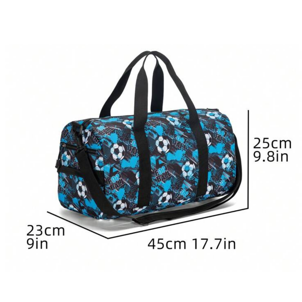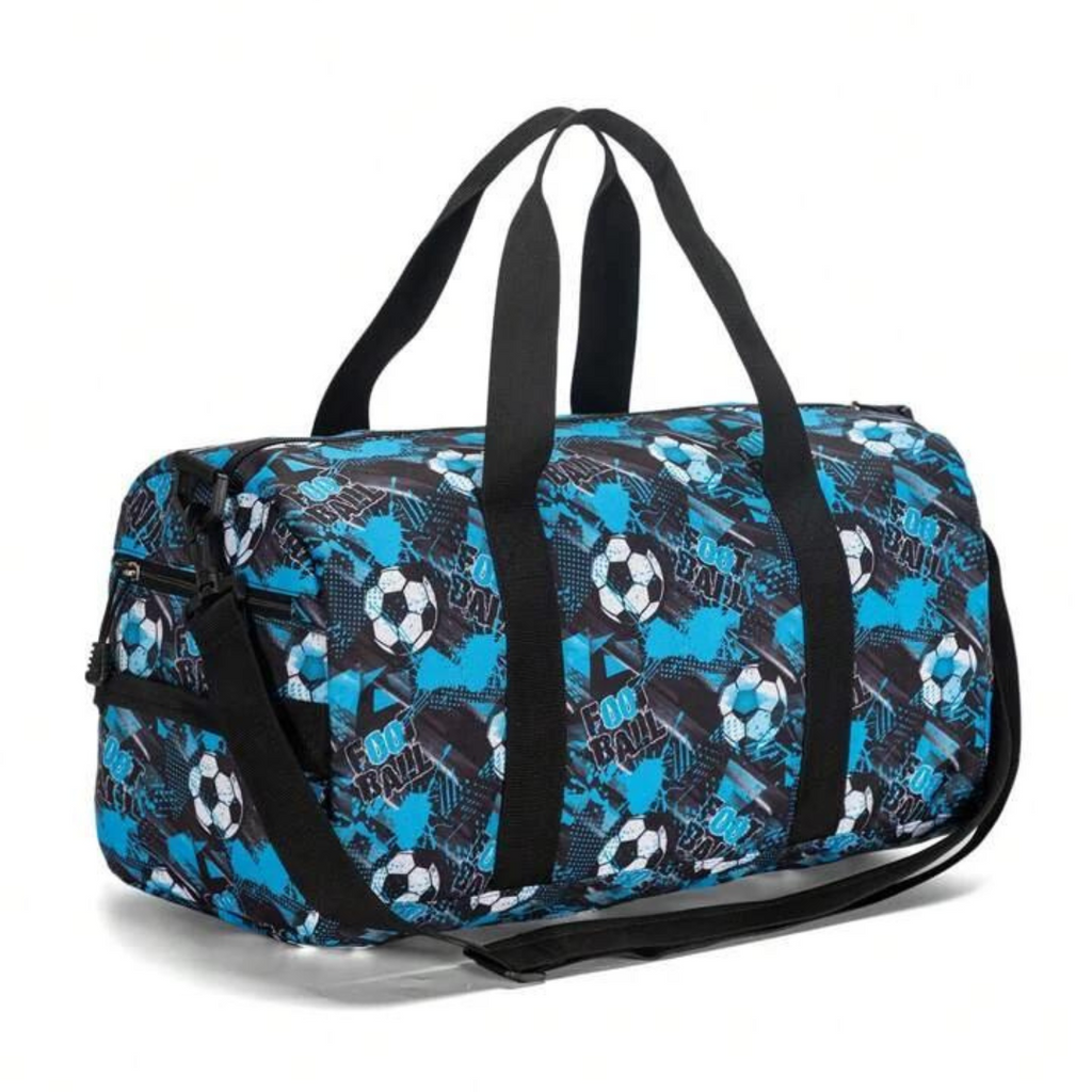 Elevate your everyday style and take your child's love for football on the go with this Football Theme Duffel Bag! This duffel bag is perfect for kids, compact yet spacious enough for all their essentials. Whether they're headed to practice, the pool or a weekend trip, this bag will help keep them organized and ready for the game.