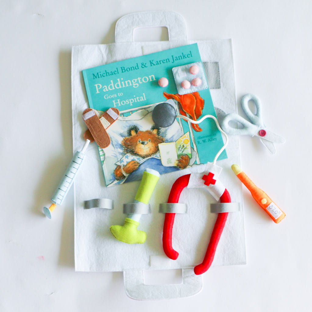 Be equipped for endless hours of imaginative play with our Felt Doctor Bag+ Book Set. Your child will love exploring the world of healing and caring with their very own felt doctor kit. It's perfect for developing creativity, empathy, and fine motor skills. Let the healing begin!