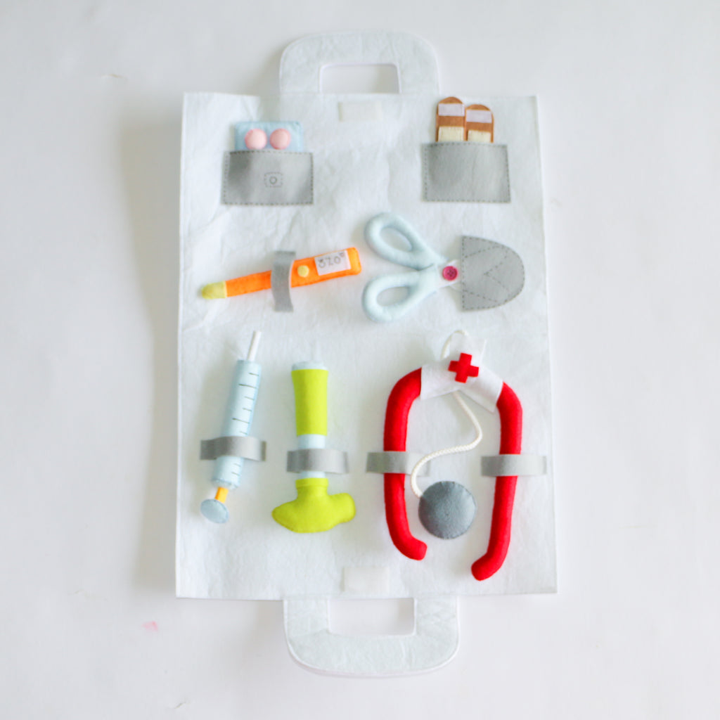 This 8 piece felt kit is just what the doctor ordered. Filled with medical essentials, your junior physician will be equipped to handle house calls!