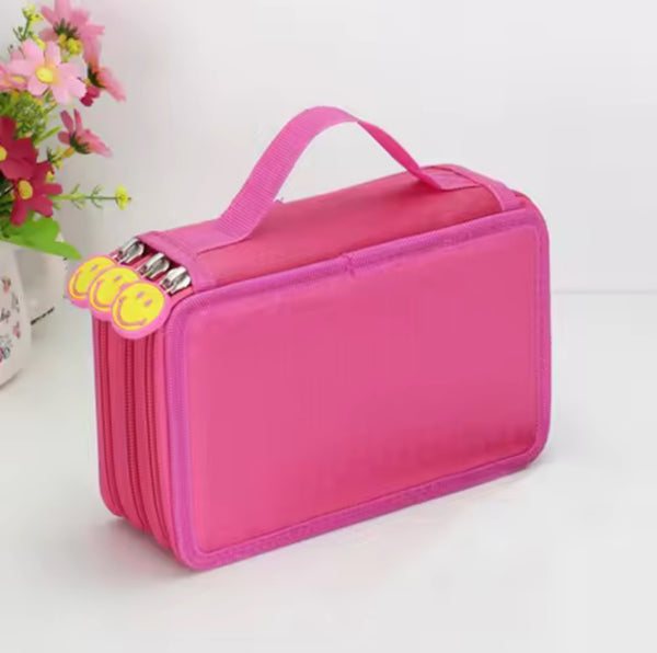 3 Layers Large Capacity Pencil Case - Deep Pink