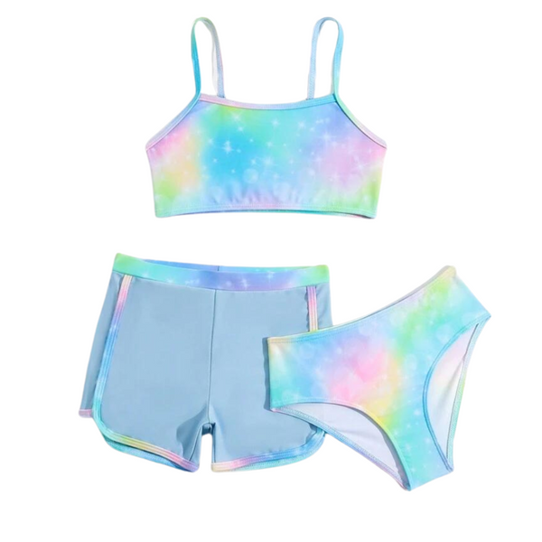 3 Pack Blue Ombré Bikini & Swim Shorts for Girls