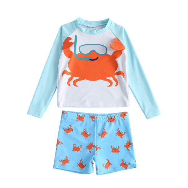 2 Pack Short Sleeve Swimsuit with Shorts for Boys - Hello Dino