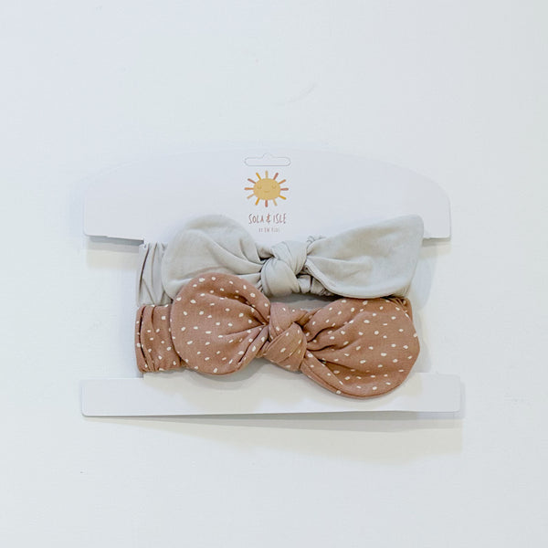 Bow Head Bands - 2 Pack - Brown Spotted & Grey
