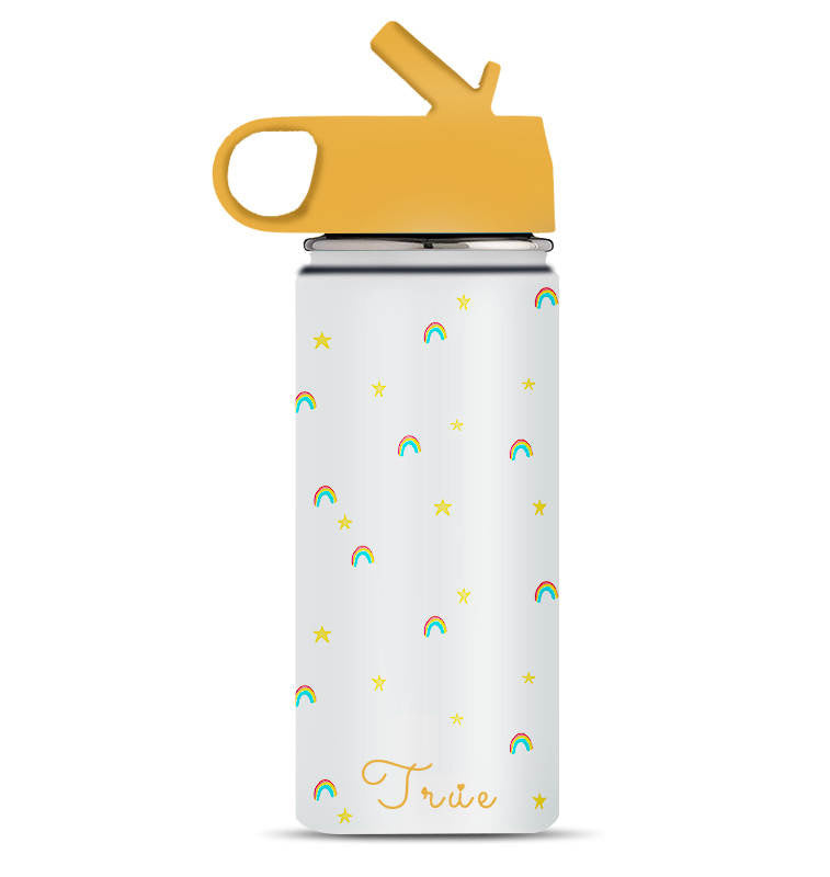 The perfect addition to your kids' lunch box, this stainless steel water bottle is an eco-friendly and BPA-free way to hydrate. Featuring a rainbow design, it's sized right for little hands and holds 12oz or 350 ml of their favorite beverage, so they can stay refreshed throughout the day.