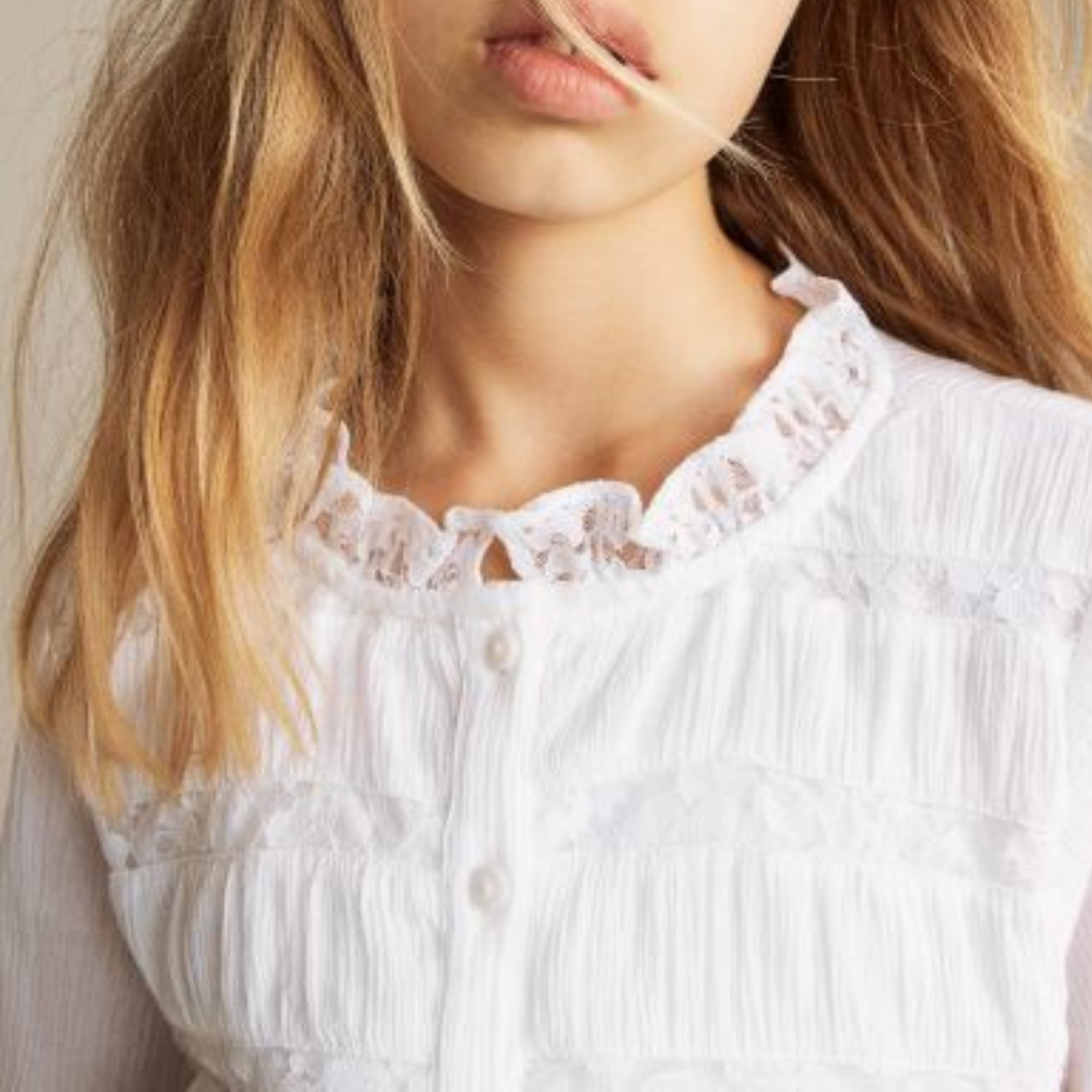With its intricate lace detailing and easy-to-use button design, this blouse is both stylish and functional. Made with high-quality materials, it offers comfort and durability for your little girl. Perfect for any occasion, dress her up and watch her shine in this beautiful blouse.