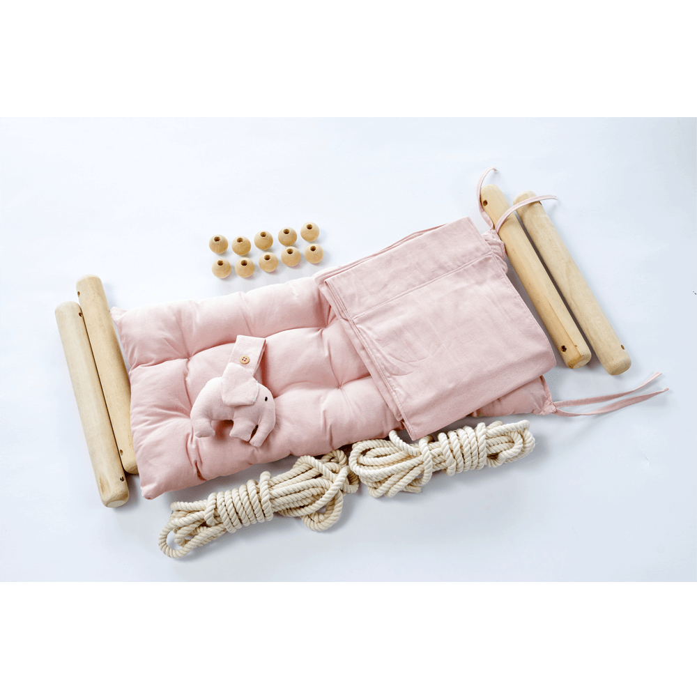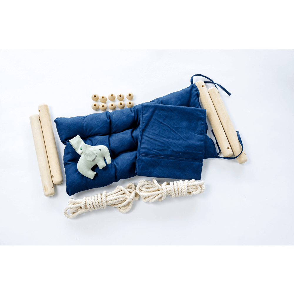 - The swing seating and cushion is sewn from natural cotton fabric.
