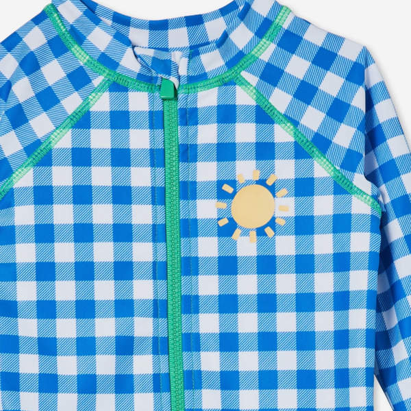 Infant Baby Long Sleeve Swimsuit - Blue Checks