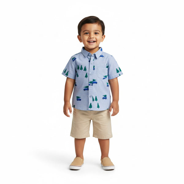 Baby Boy Shirt - Red, Green & Blue Floral Print