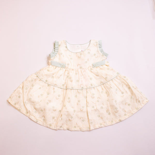 Baby Girl Bow Layered Sateen Dress - Cream