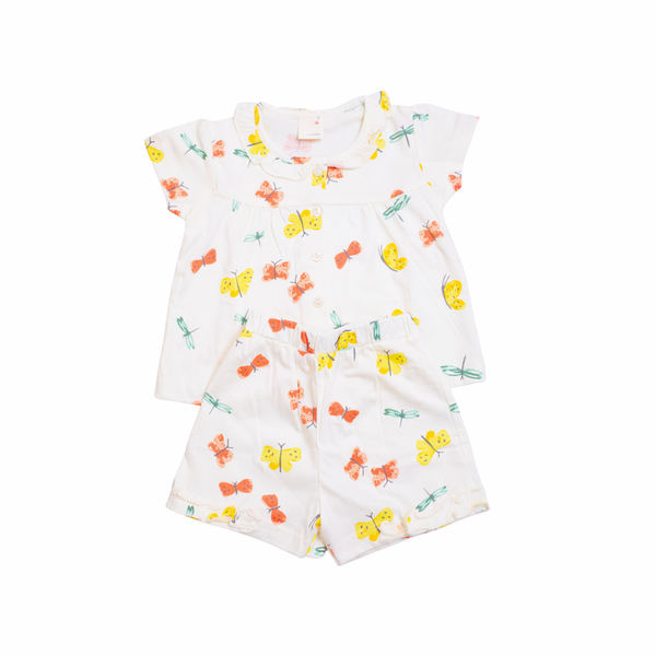 Baby Girl Cotton Bow Shorts - Floral Orange