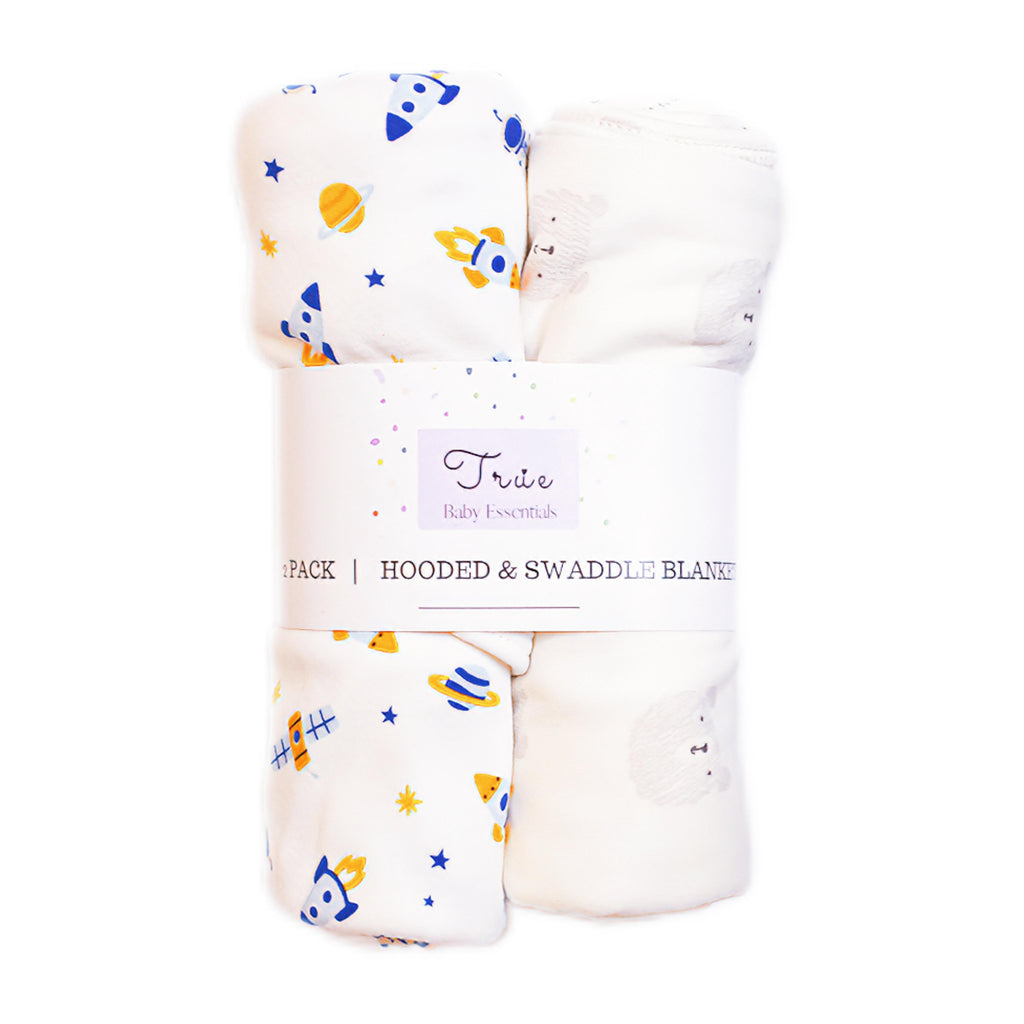 Baby Hooded & Swaddle Blanket 2 Pack - Space and Bear Theme Set