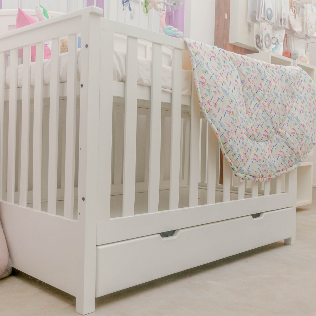 Tell your own story and personalize your child's crib with this modern functional cot that grows with your baby.