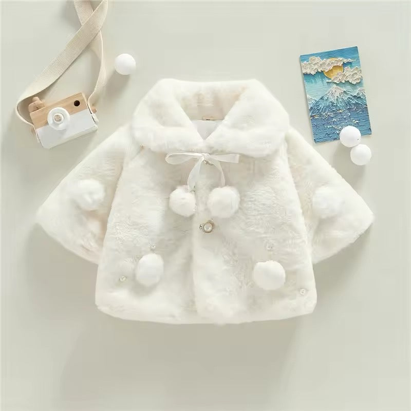 Made with soft faux fur, this coat is perfect for layering over dressy outfits.