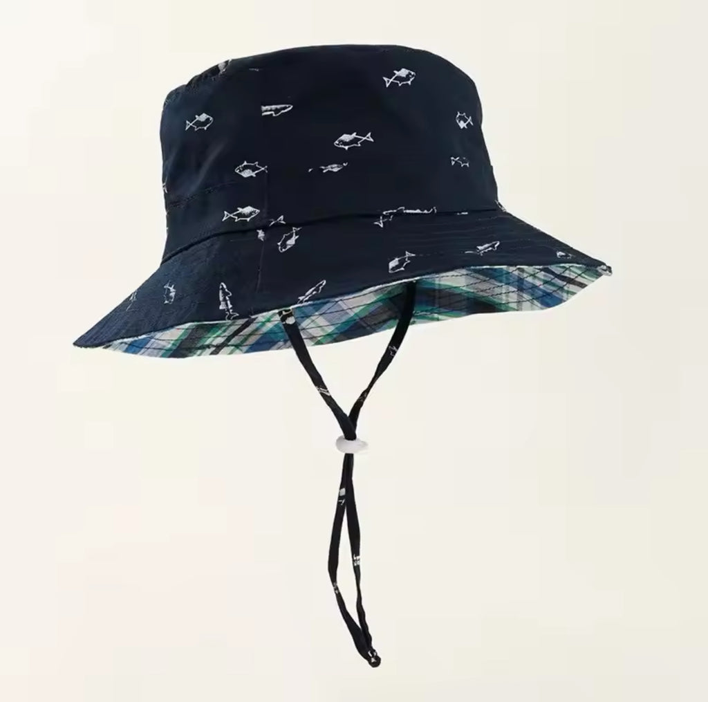 Children’s Reversible Sun Hat - Navy Fish