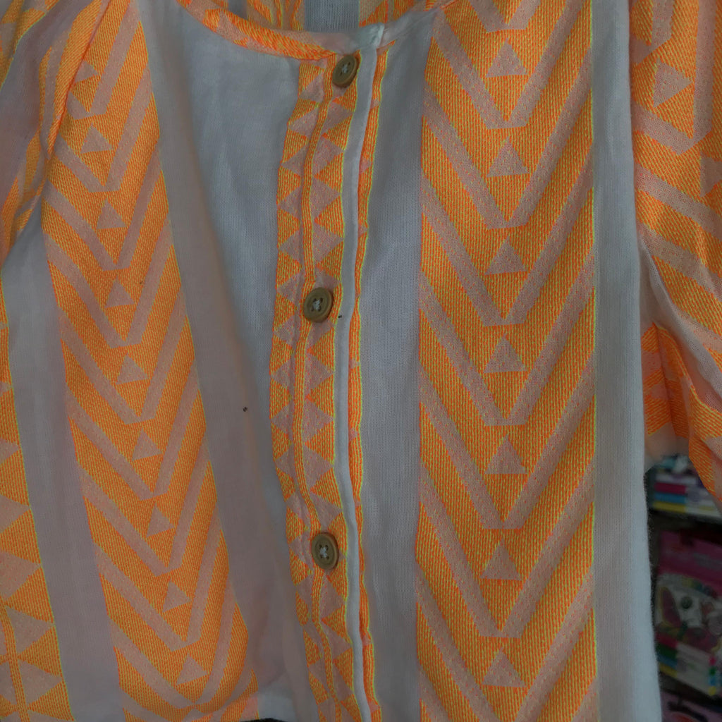 Kids Orange Strip Puff Frill Sleeve Crop Top