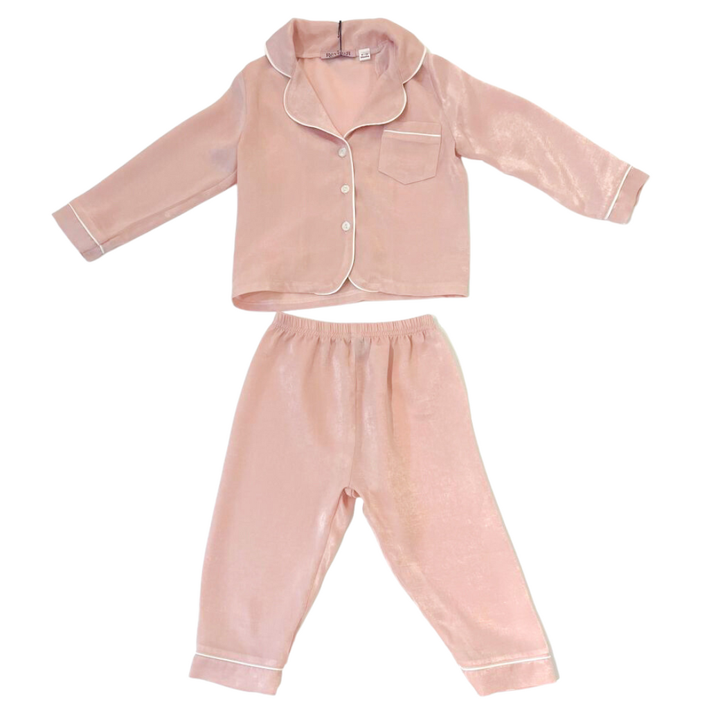 These Satin Pajamas in soft pink offer a cozy and stylish sleepwear option for both moms and toddlers. Crafted from lightweight, breathable satin, they help keep your family cool and comfortable throughout the night. The long sleeves and pants provide gentle coverage, making bedtime a soothing and fashionable experience for you and your little one.