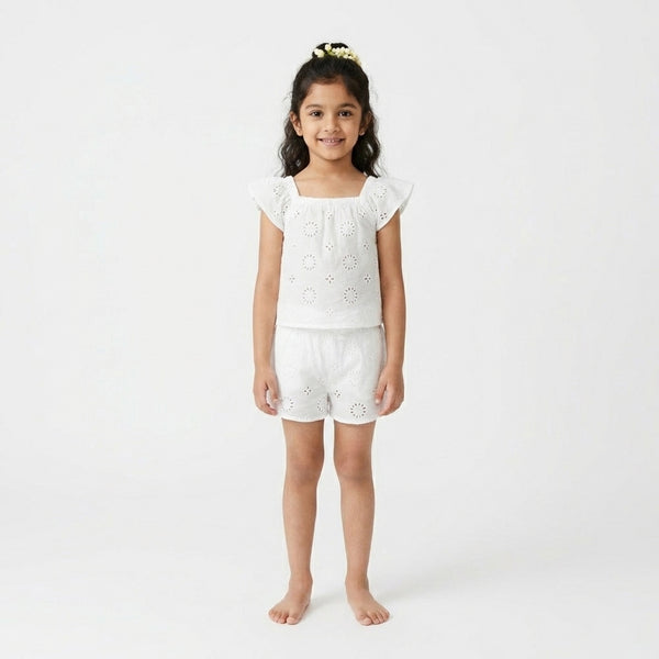 Baby Girl Cream Floral Summer Top with Shorts