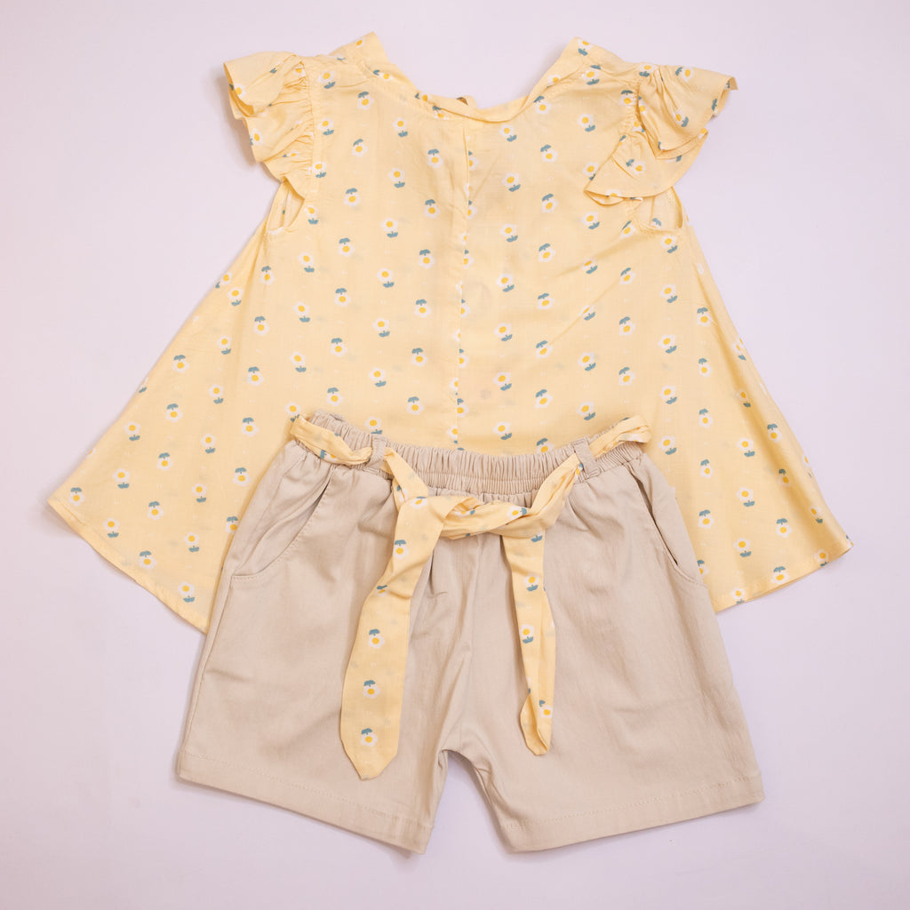 This adorable floral top with shorts is perfect for your little one this summer. Made from lightweight and comfortable fabric, it's great for all-day wear. Dress your baby girl in style and comfort with this summer outfit.