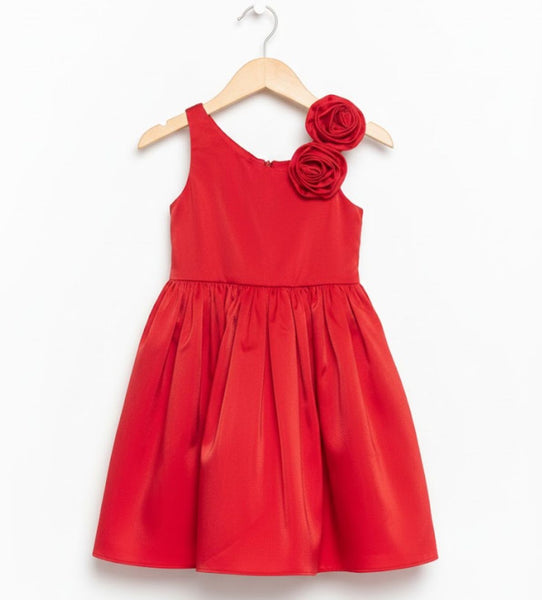Girls Sleeveless Cotton Cutwork Deep Red dress