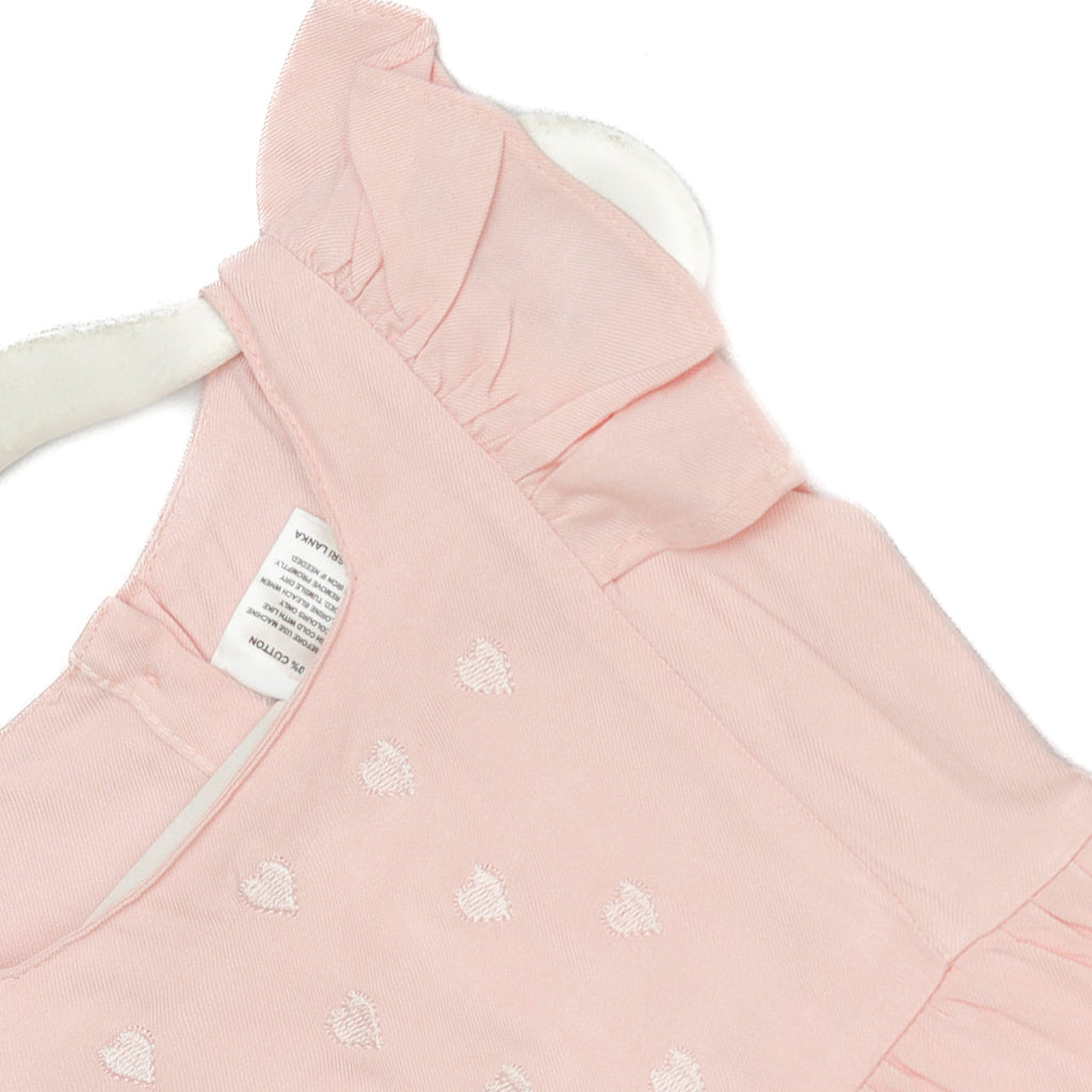 This dress features delicate heart embroidery, adding a touch of elegance to your little one's outfit.