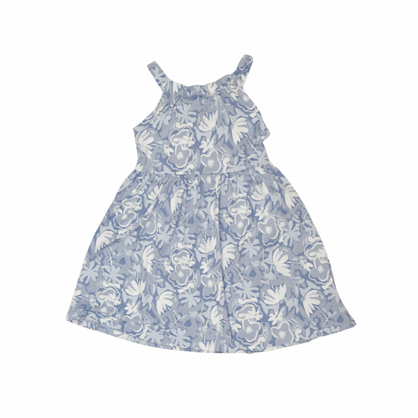 Girls Tank Soft Cotton Floral Dress - Light Blue