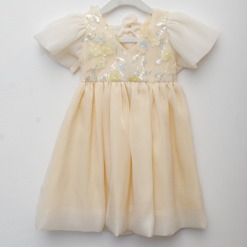 A light yellow, floral-inspired mini dress with a flattering fit and breezy silhouette — perfect for sunny days and casual occasions.