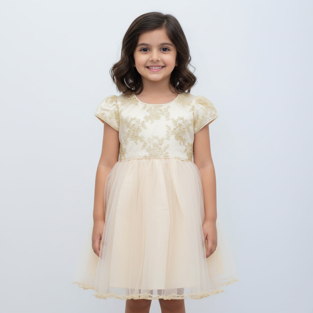 Delight your little one with this exquisite peach party dress featuring delicate embroidered lace and soft tulle layers. Designed for comfort and style, it offers a graceful silhouette perfect for special occasions. The intricate embroidery adds a refined touch, while the lightweight tulle ensures ease of movement, making it ideal for celebrations and memorable moments.