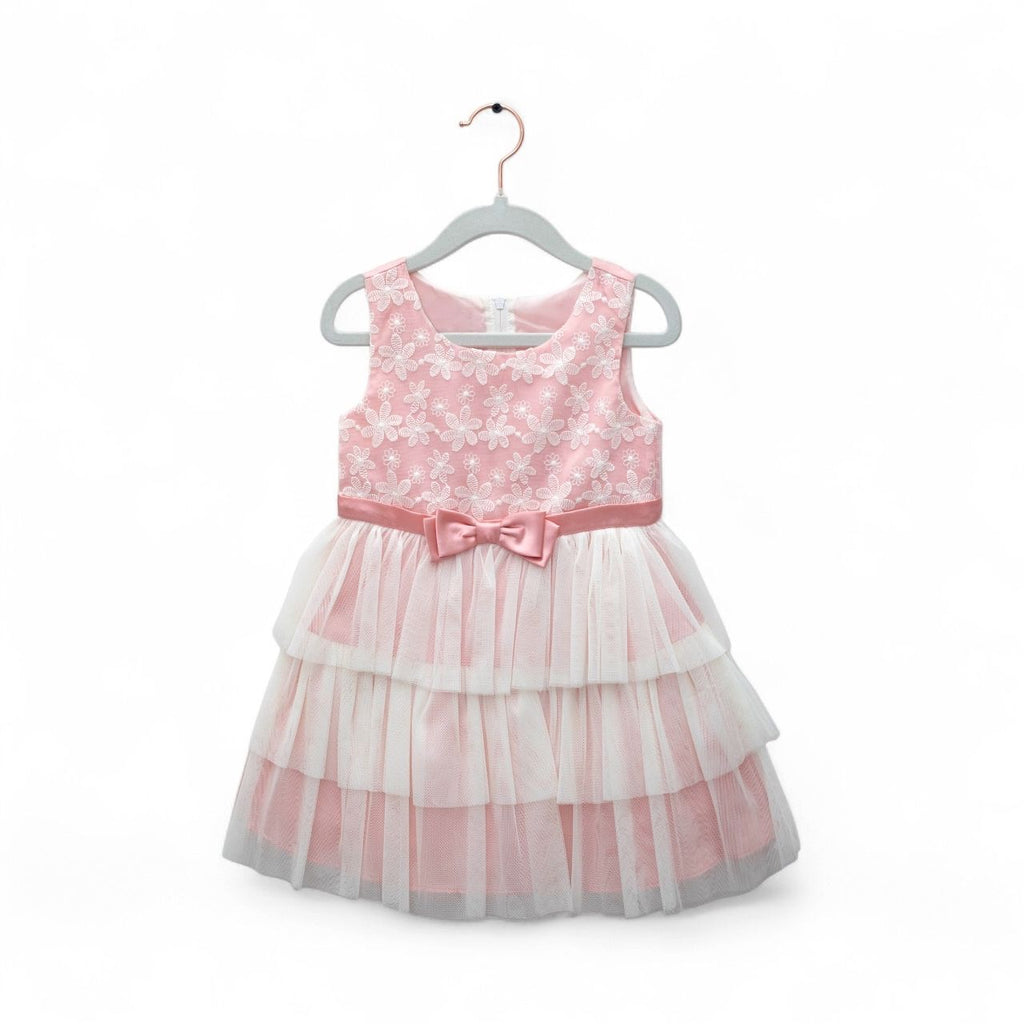 Girls Sleeveless Bow Layered Tulle Party Dress in Pink