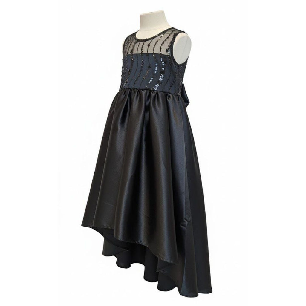 Girls Satin Party Sparkly High Low Party Dress - Black