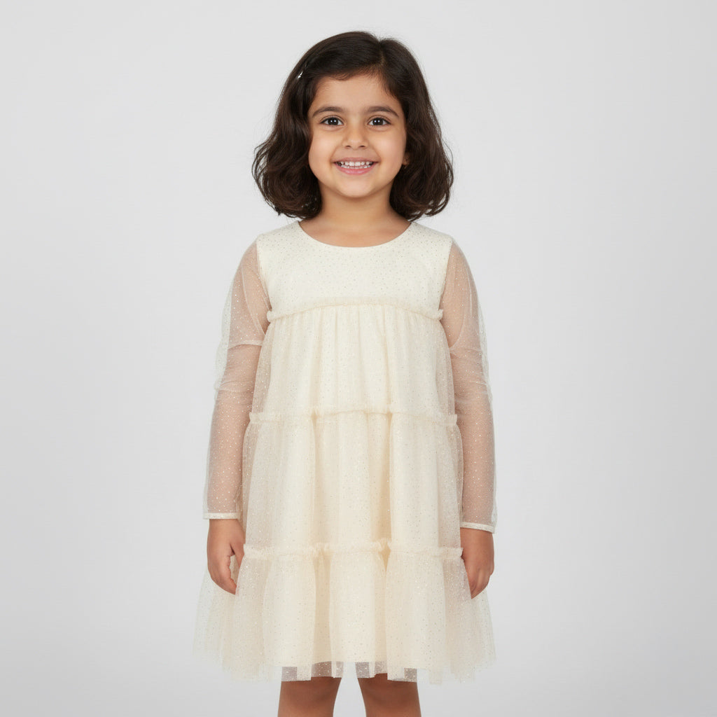 Long Sleeve Shiny Tulle Party Dress