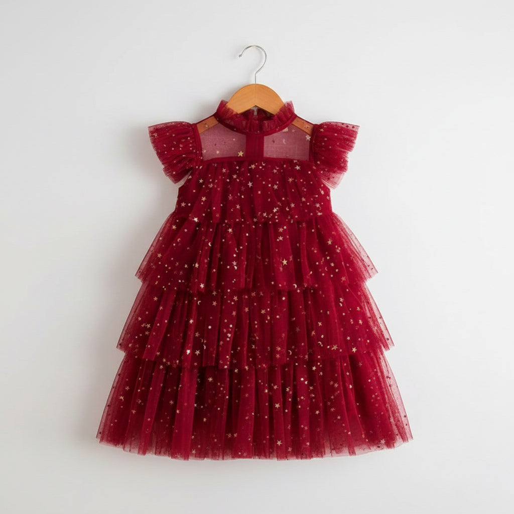 Make sure your little one is dressed to impress in this stylish party dress! Cut from a red tulle that's sure to make them sparkle, it's the perfect outfit for any special occasion. Look no further for a show-stopping style your kid's sure to love!.