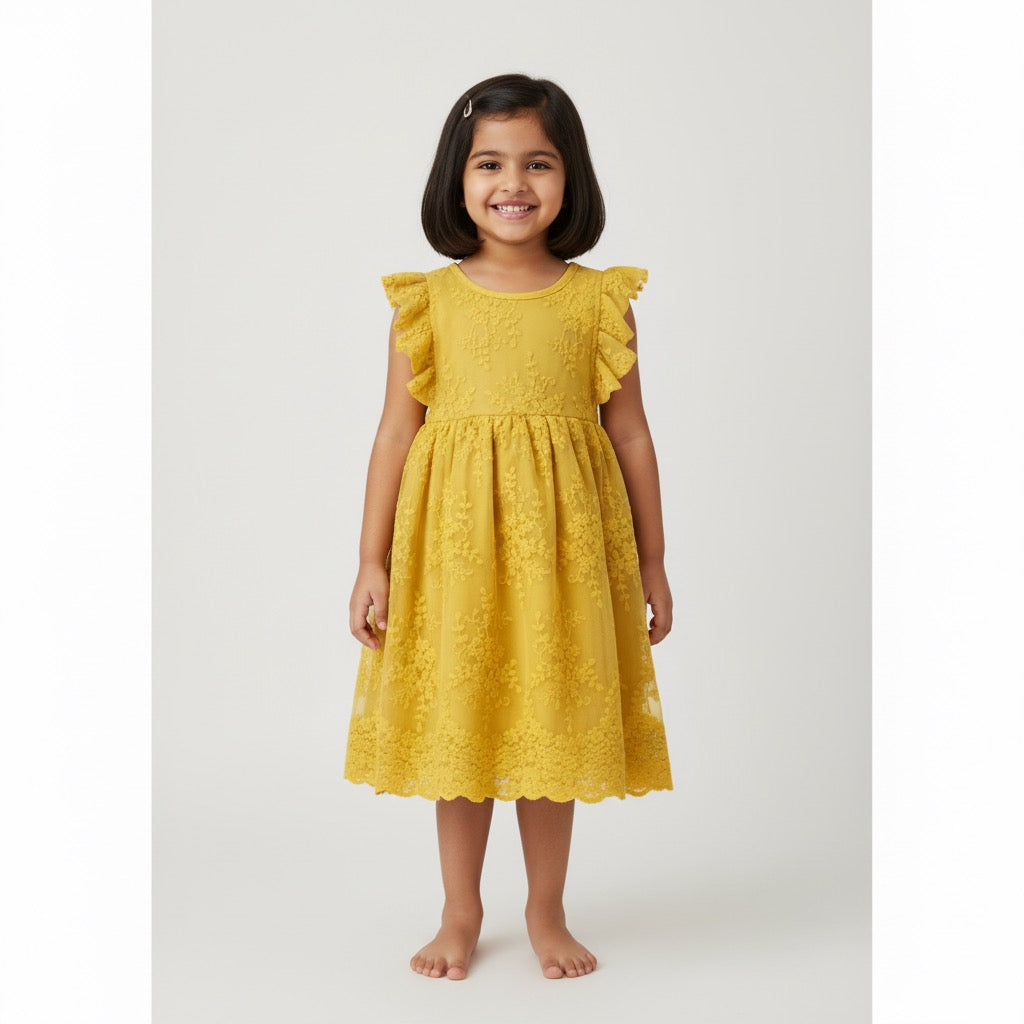 Girls Yellow Embroidered Party Dress