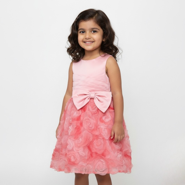 Girls Sleeveless Rossette Bow Tulle Party Dress in Pink (30% Sale)