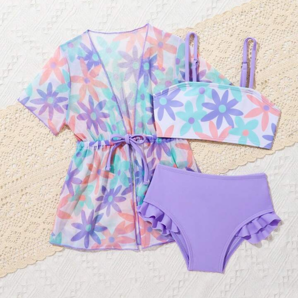 Baby Girl 3 Piece Purple Floral Bikini + Kimono