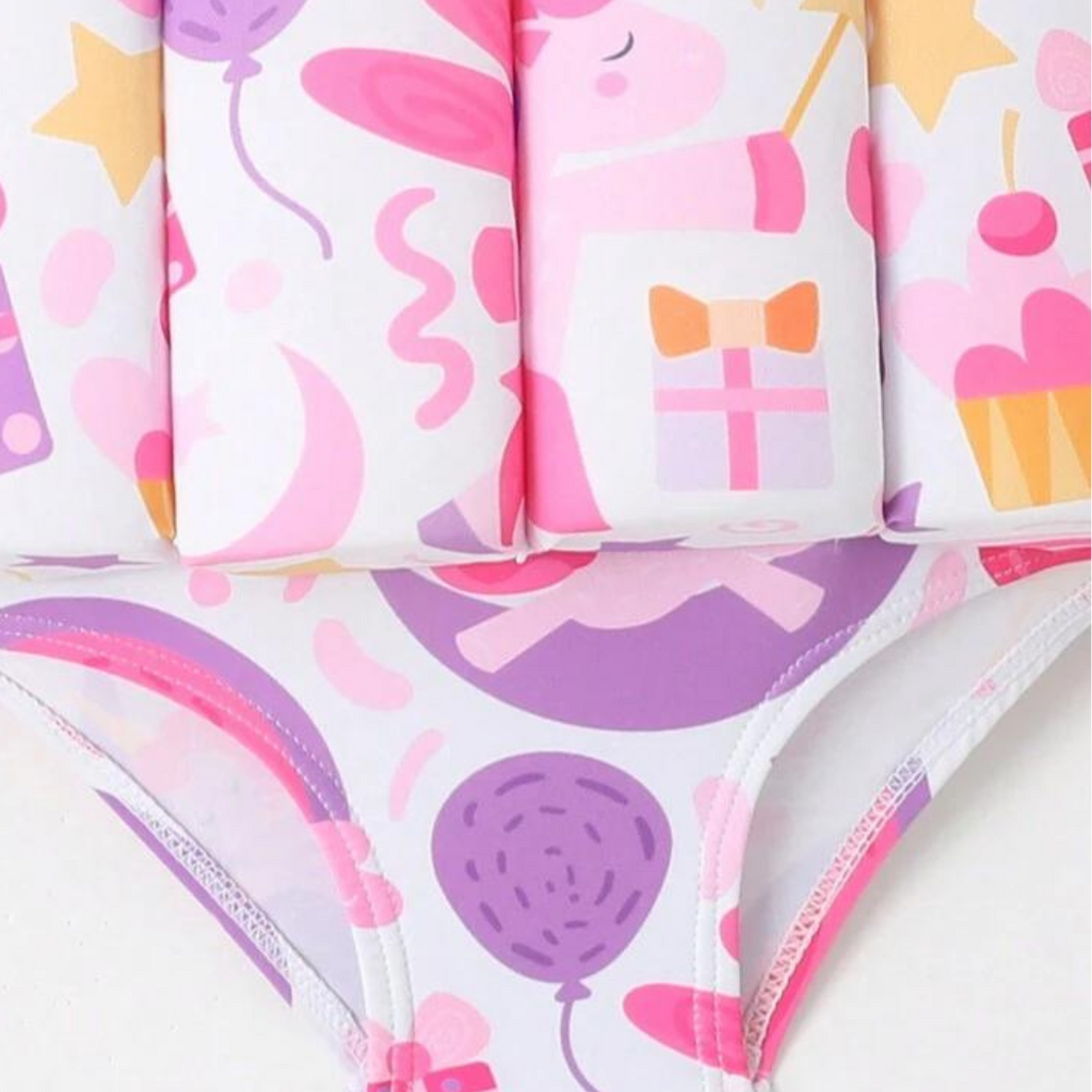 This Baby Girl One Piece Floating Swim Suit, featuring a charming pink unicorn print, ensures both safety and comfort in the water. Its buoyant design supports young swimmers, boosting their confidence as they enjoy pool or beach time. Ideal for fun-filled water adventures!