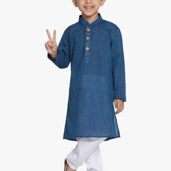 Mandarin Collar Blue Boys Kurta Pajama Set