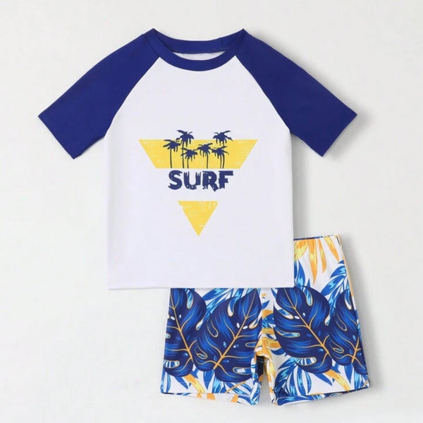 2 Pack Surf Tropical Short Sleeve Swim + Shorts
