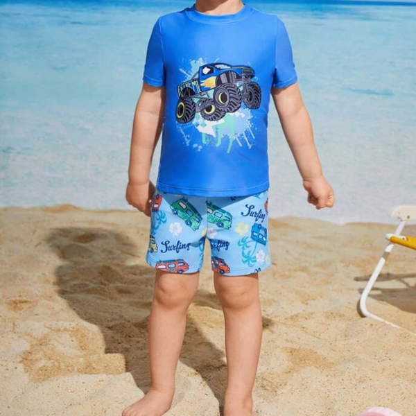 2 Pack Cars Short Sleeve Swim + Shorts for Boys