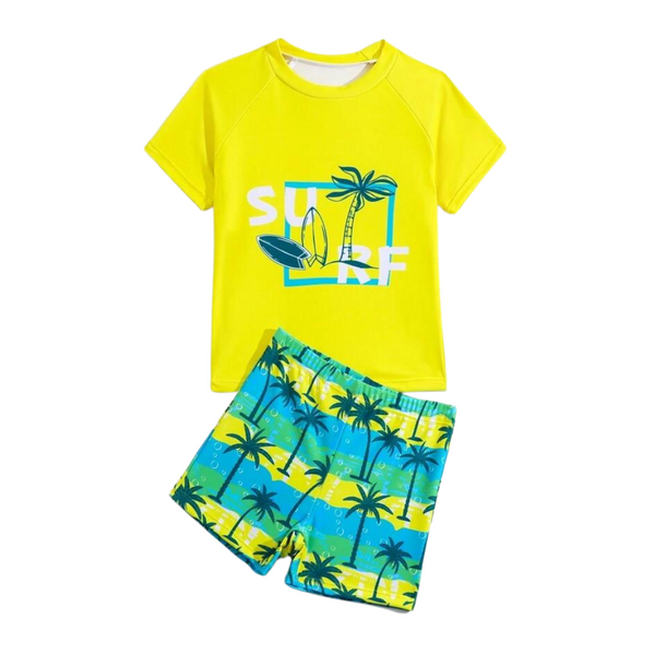 2 Pack Palm Trees Yellow Short Sleeve Swim + Shorts for Boys