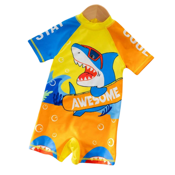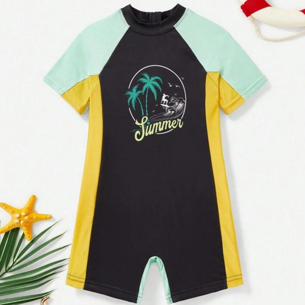 Summer Short Sleeve One Piece Swimsuit for Boys