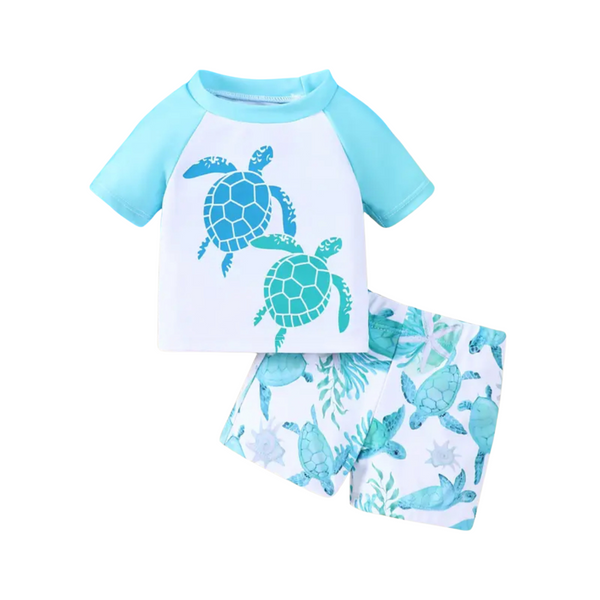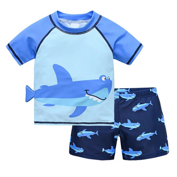 2 Pack Short Sleeve Swimsuit with Shorts for Boys - Hello Dino
