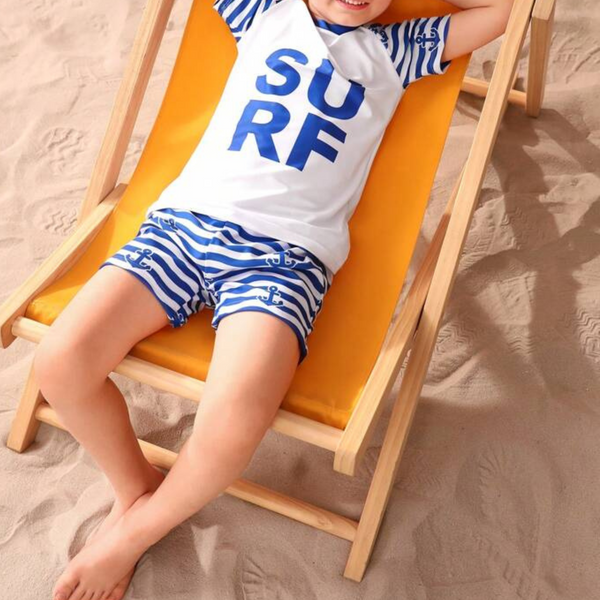 2 Pack Surf & Stripes Short Sleeve Swim + Shorts for Boys