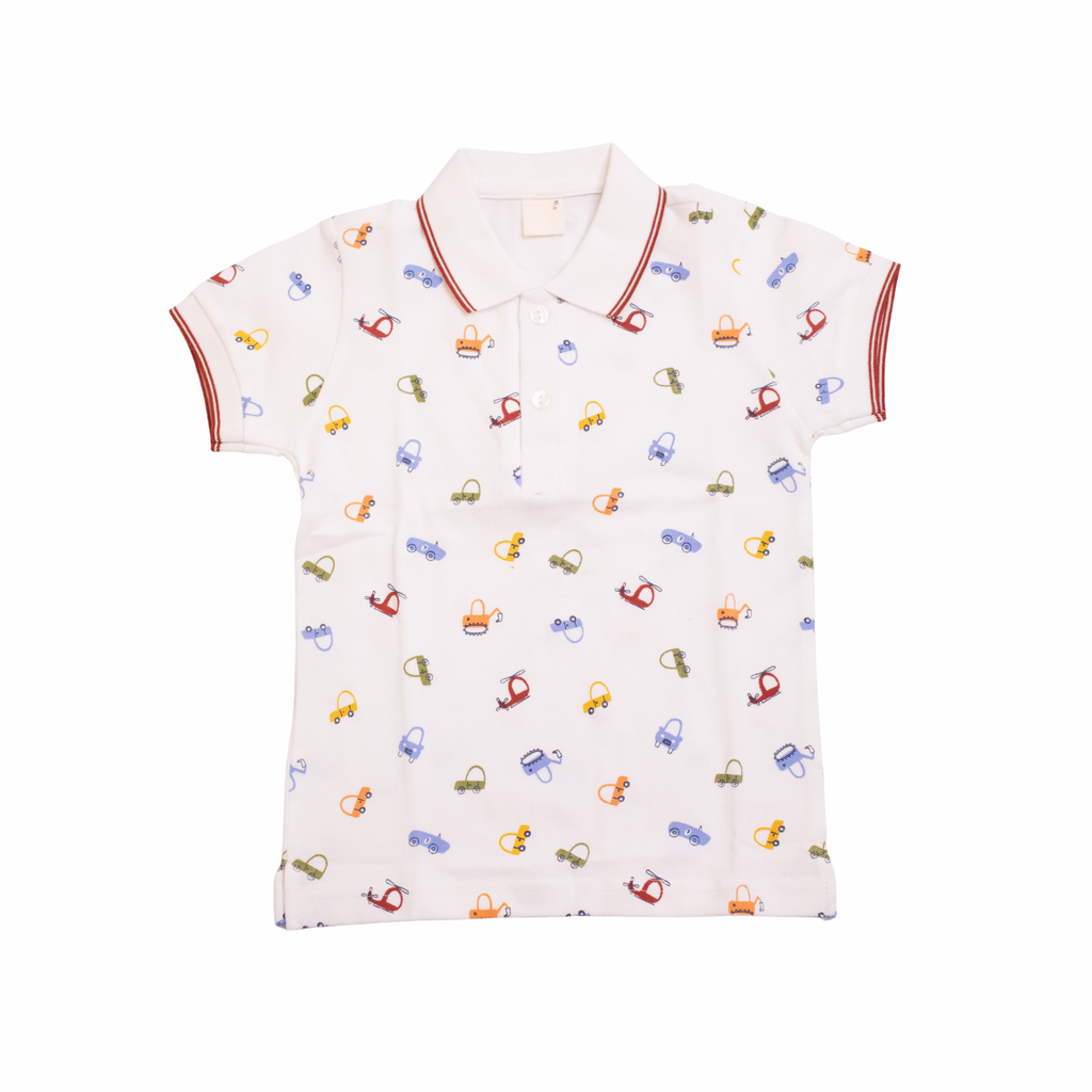 Boys Polo Red Collared T-shirt in Vehicle Pattern