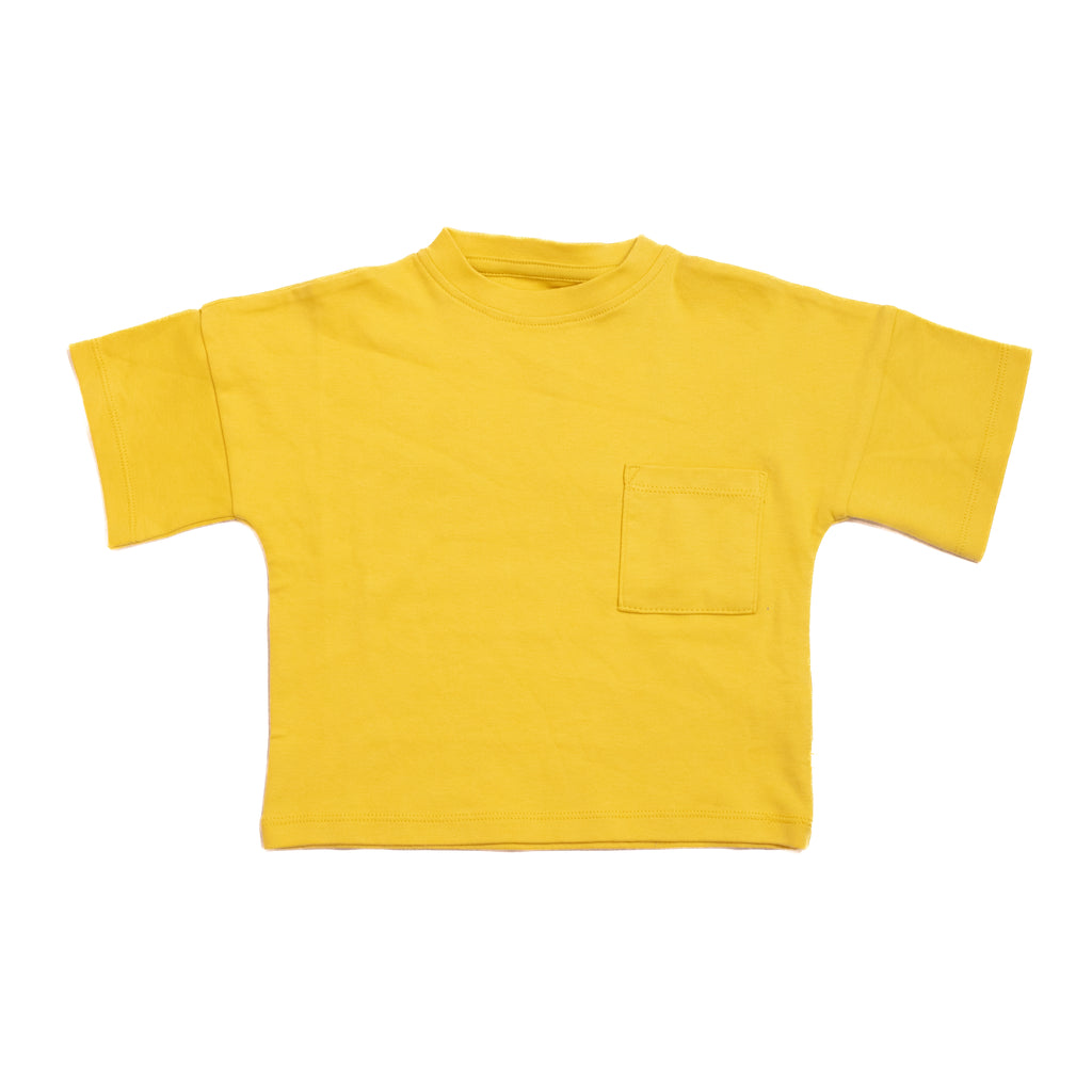 This drop sleeve cotton t-shirt in yellow is the perfect choice for playful adventures. Its soft, breathable fabric ensures comfort all day long, while the relaxed fit allows freedom of movement for endless fun. Bright and cheerful, it adds a sunny touch to any outfit, making every moment outdoors even more enjoyable.