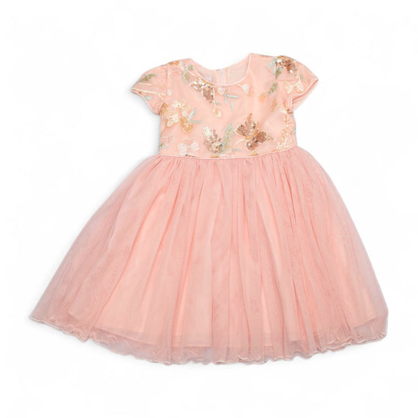 Girls Tulle Party Dress with Floral Embroidery in Green