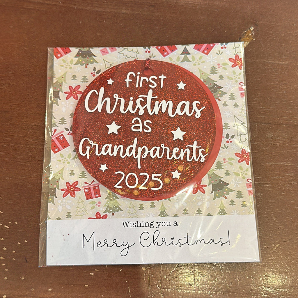 Christmas Tree Ornament - First Christmas as Grandparents 2025 (Glitter Red)