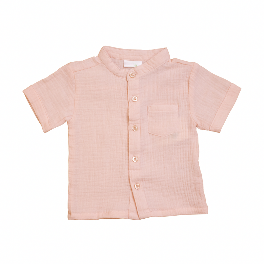 Boys Short Sleeve Muslin Shirt - Pale Pink