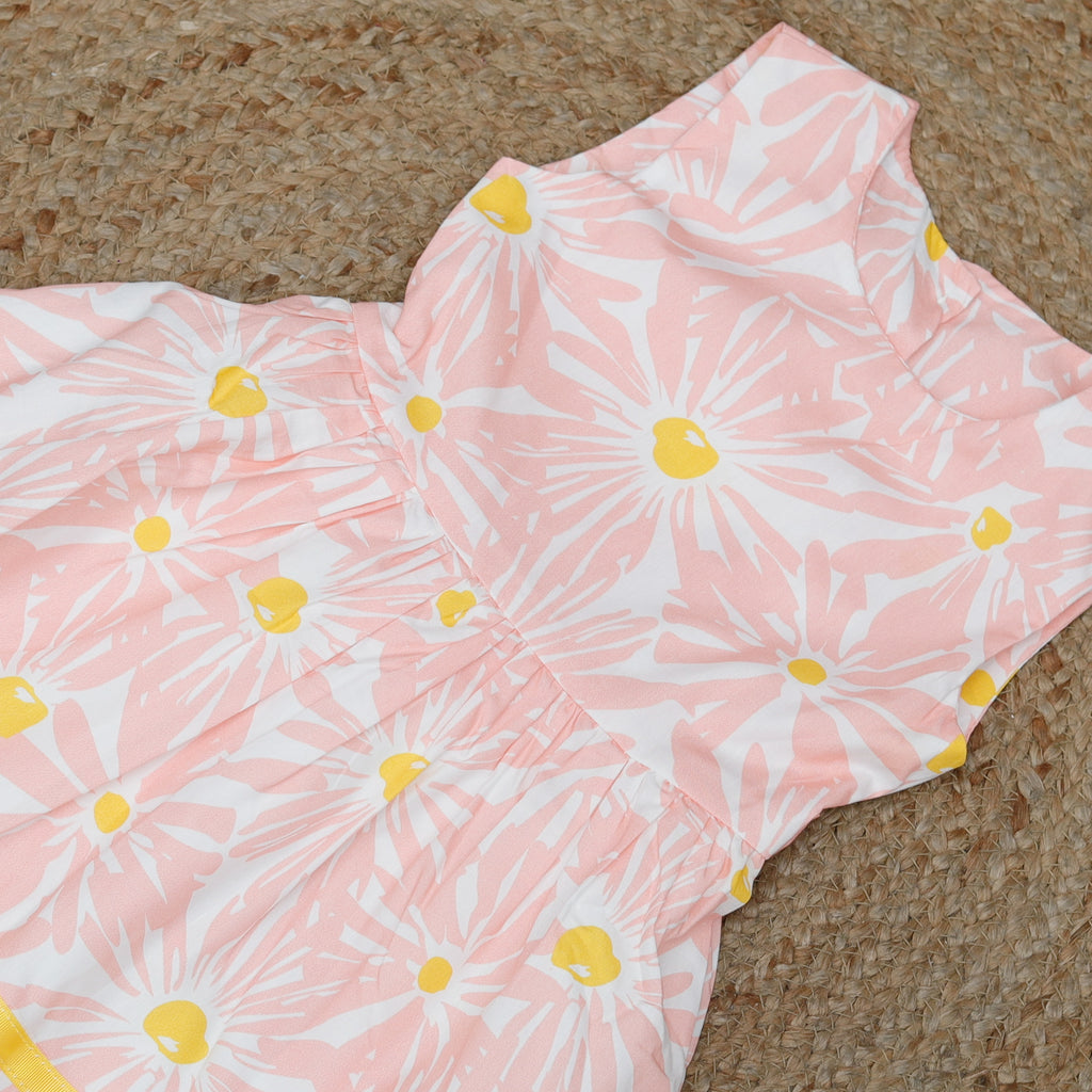 Introducing this Girls Pink & Yellow Patterned Floral Dress, perfect for any special occasion. Featuring a vibrant pink and yellow floral pattern, this dress is sure to make your little one stand out.
