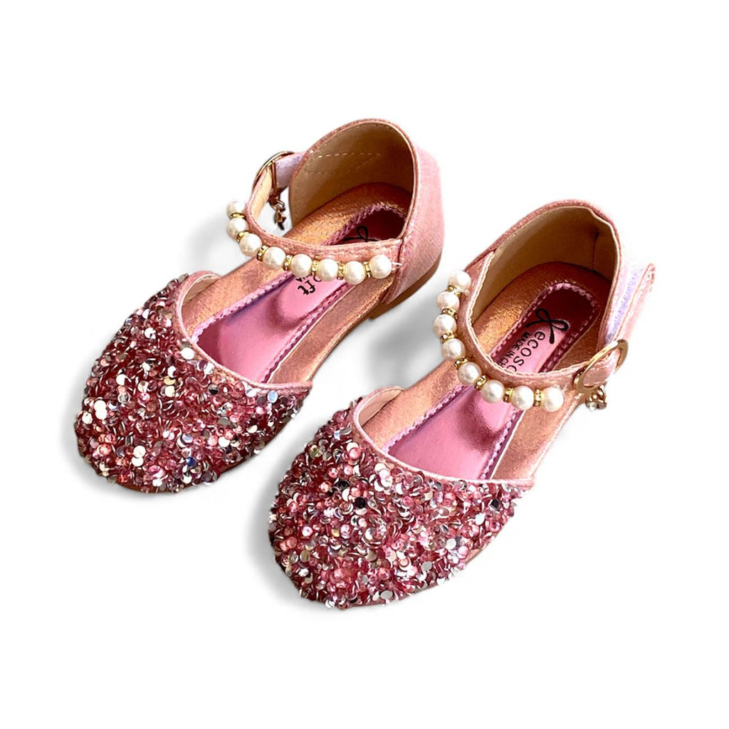 Sparkly Sequin Party Shoes with Faux Pearl Strap